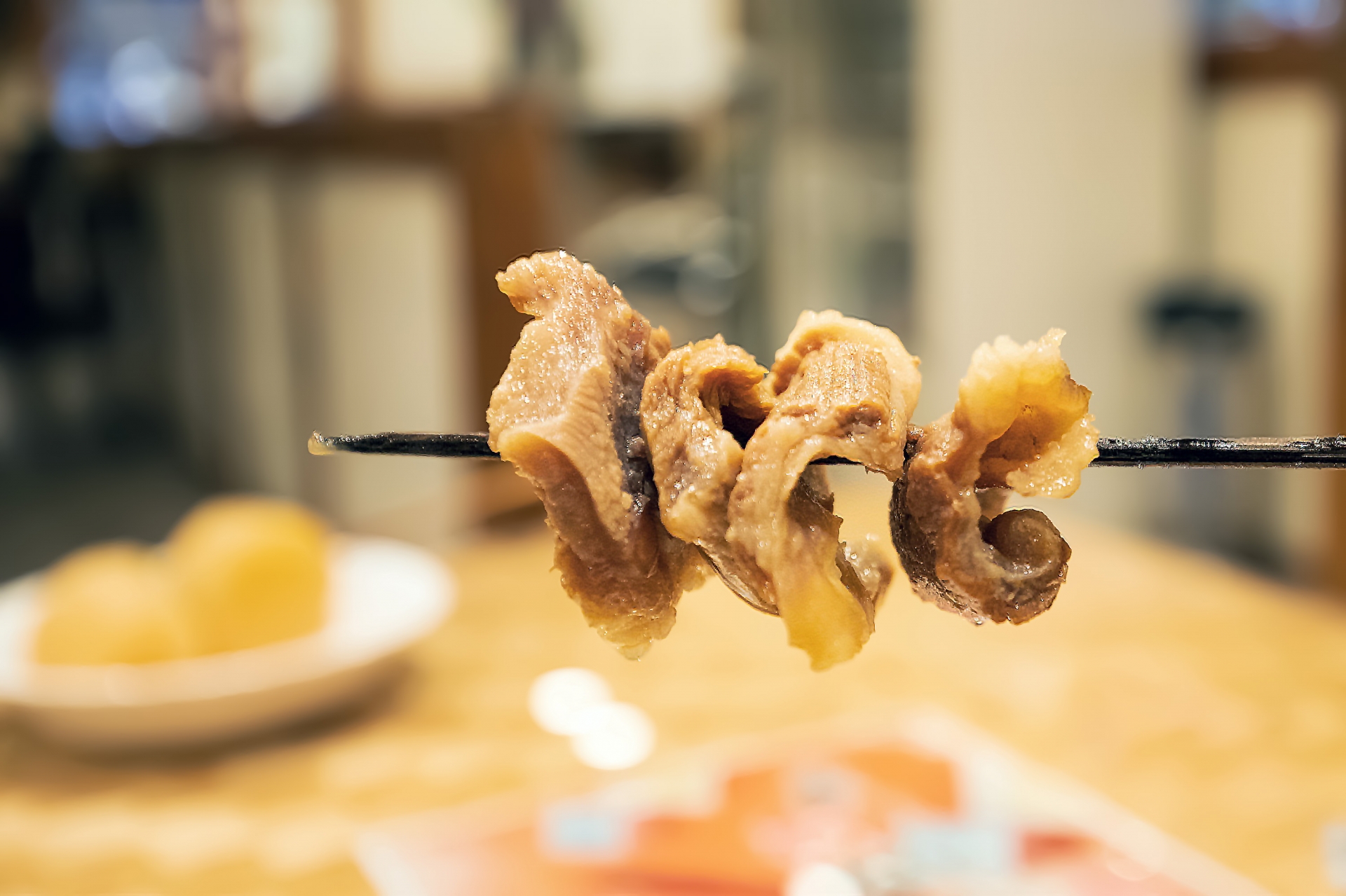 練り物や卵はわかりやすい甘みやコクがあります。牛すじは主張が強すぎないため、全体のまとまりを作ります。噛むとほどける食感も特長で、食べ応えがあるのに重く感じにくいのが魅力です。