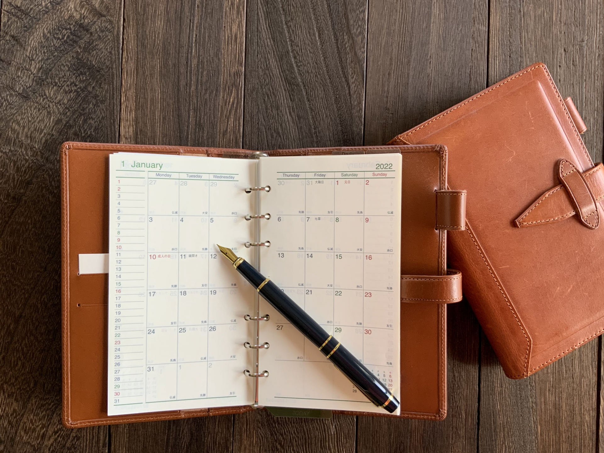 月間は眺めるためのページです。外せない予定だけを書き、余白を広めに残します。詰め込みは避け、重要な行事や締切に絞ります。色分けも控えめにし、意味が強い色だけ使います。