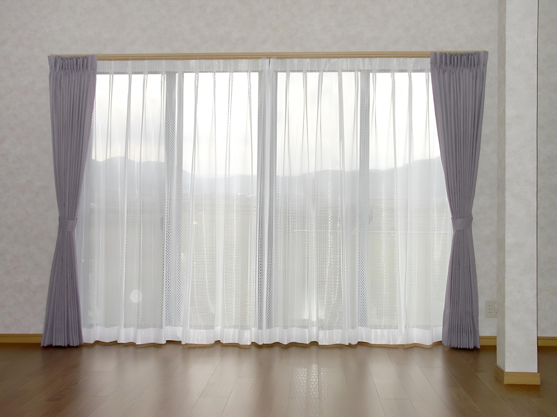 壁に穴を開けない方法(フック調整や折り返し)なら、基本的に使いやすいです。貼るタイプを使う場合も、カーテン自体に貼る形なら壁や床に影響が出にくいので、まずは目立たない場所で軽く試してみると安心です。 - レースカーテンはどうする?